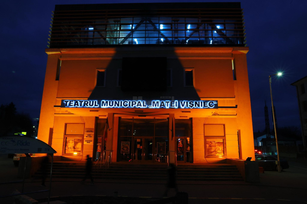 Teatrul Municipal „Matei Vișniec” – clădirea din Suceava care va fi iluminată în portocaliu – are această destinație din 2015, când Consiliul Local Suceava a hotărât înființarea unei instituții teatrale. Edificiul fusese renovat din fonduri europene, după ce vreme de decenii a fost sediul Cinematografului Modern. Construită la sfârșitul anilor ’50, clădirea a fost ridicată în stil neoclasic stalinist, ca un „templu al noii culturi” la începutul perioadei comuniste. A funcționat ca cinematograf până la degradarea sa după anul 2000, fiind ulterior preluată de administrația locală. După ample procese de modernizare, astăzi este sediul Teatrului Municipal „Matei Vișniec” Suceava.