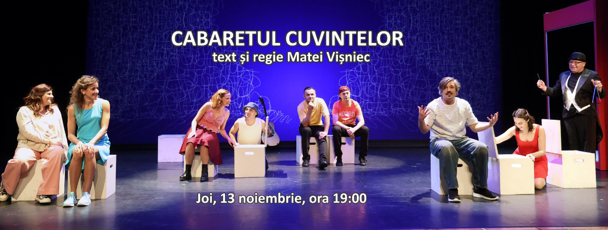 Spectacolul Cabaretul cuvintelor de Matei Vișniec, prima producție din stagiunea 2025 – 2026, este montat pe scena teatrului de însuși dramaturgul Matei Vișniec. Autorul a rescris „Cabaretul cuvintelor” special pentru actorii teatrului care îi poartă numele și ne propune să pornim într-o călătorie în acest univers în care cuvintele sunt personaje adevărate cu sentimente și acțiuni proprii care trăiesc independent de voința oamenilor. „Am conceput acest spectacol ca un omagiu adus cuvintelor întrucît ele ne conferă statut uman. Dar ştim noi să le preţuim cu adevărat?” se întreabă Matei Vișniec.