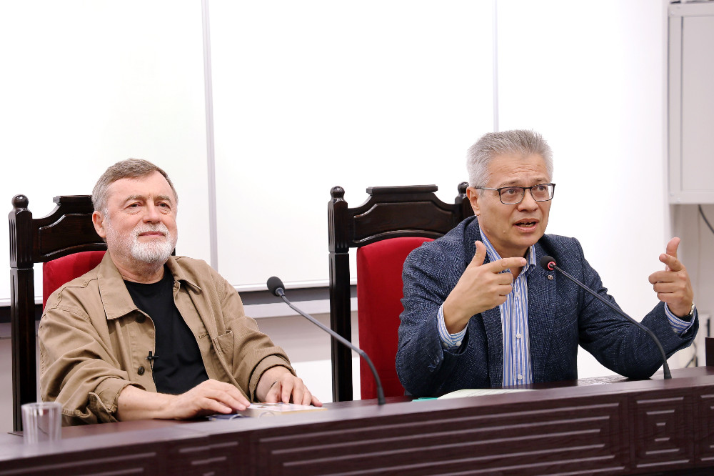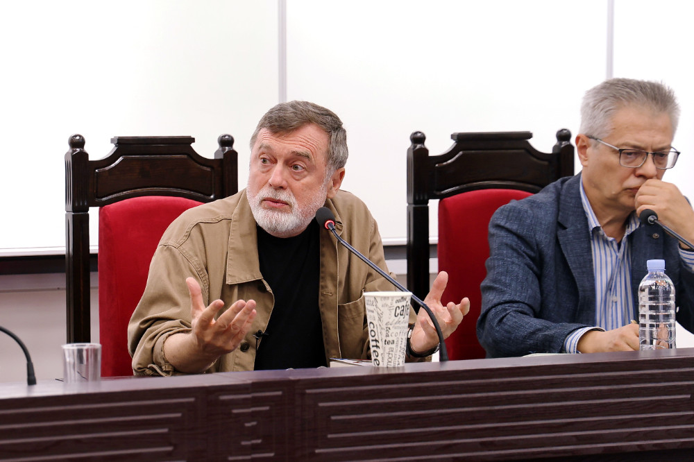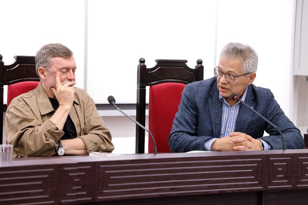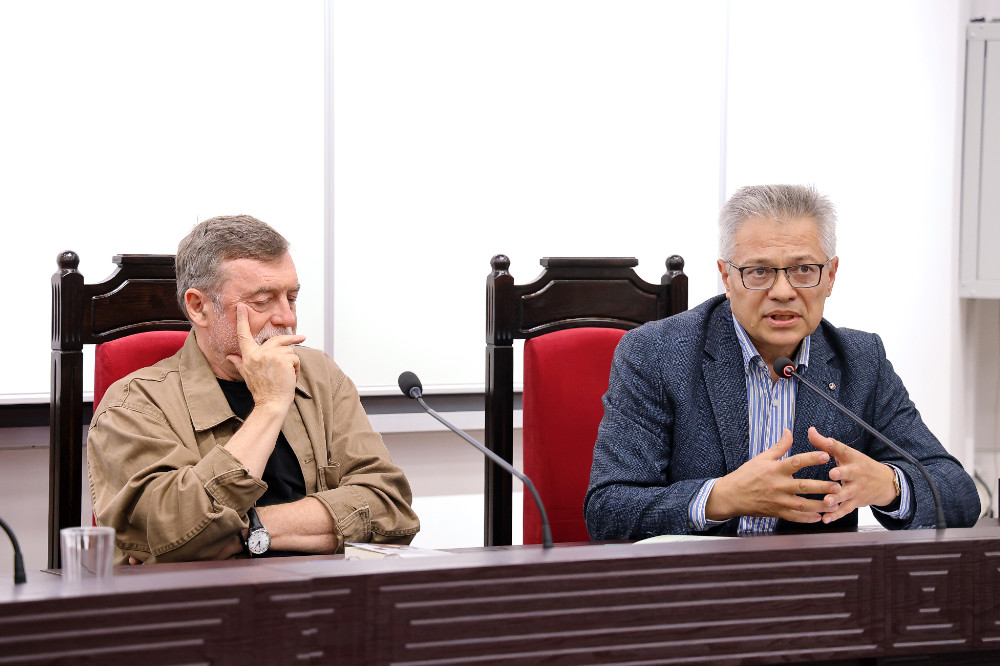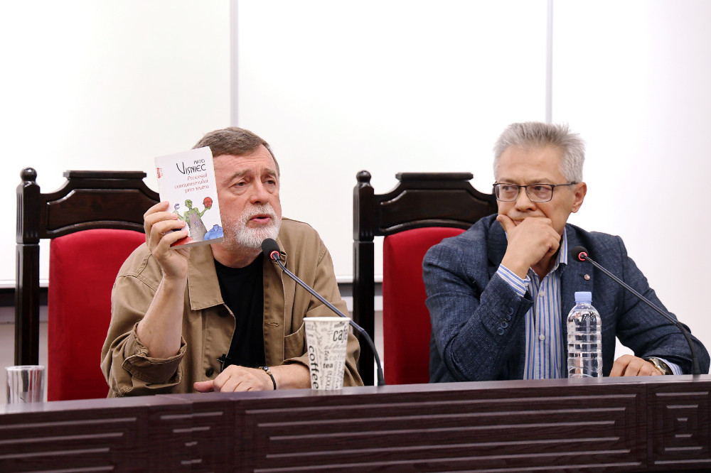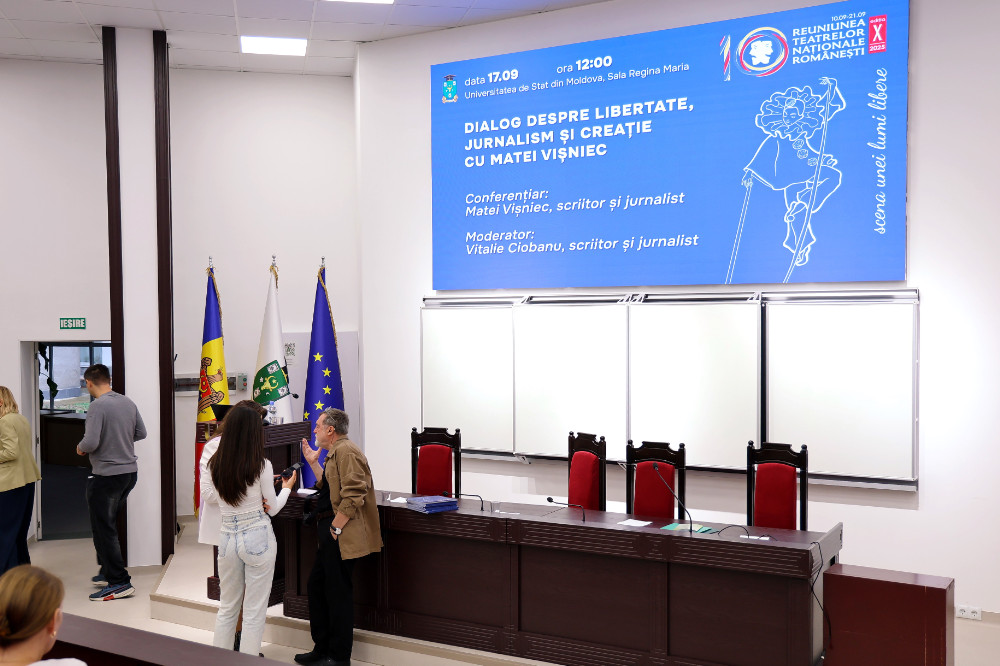 La Universitatea de Stat din Moldova, Sala „Regina Maria”, a avut loc astăzi o conferință pe tema libertății și limitelor ei în jurnalism și în artă, în literatura de ficțiune, susținută de scriitorul, jurnalistul și poetul Matéi Visniec și moderată de jurnalistul și scriitorul Vitalie Ciobanu.