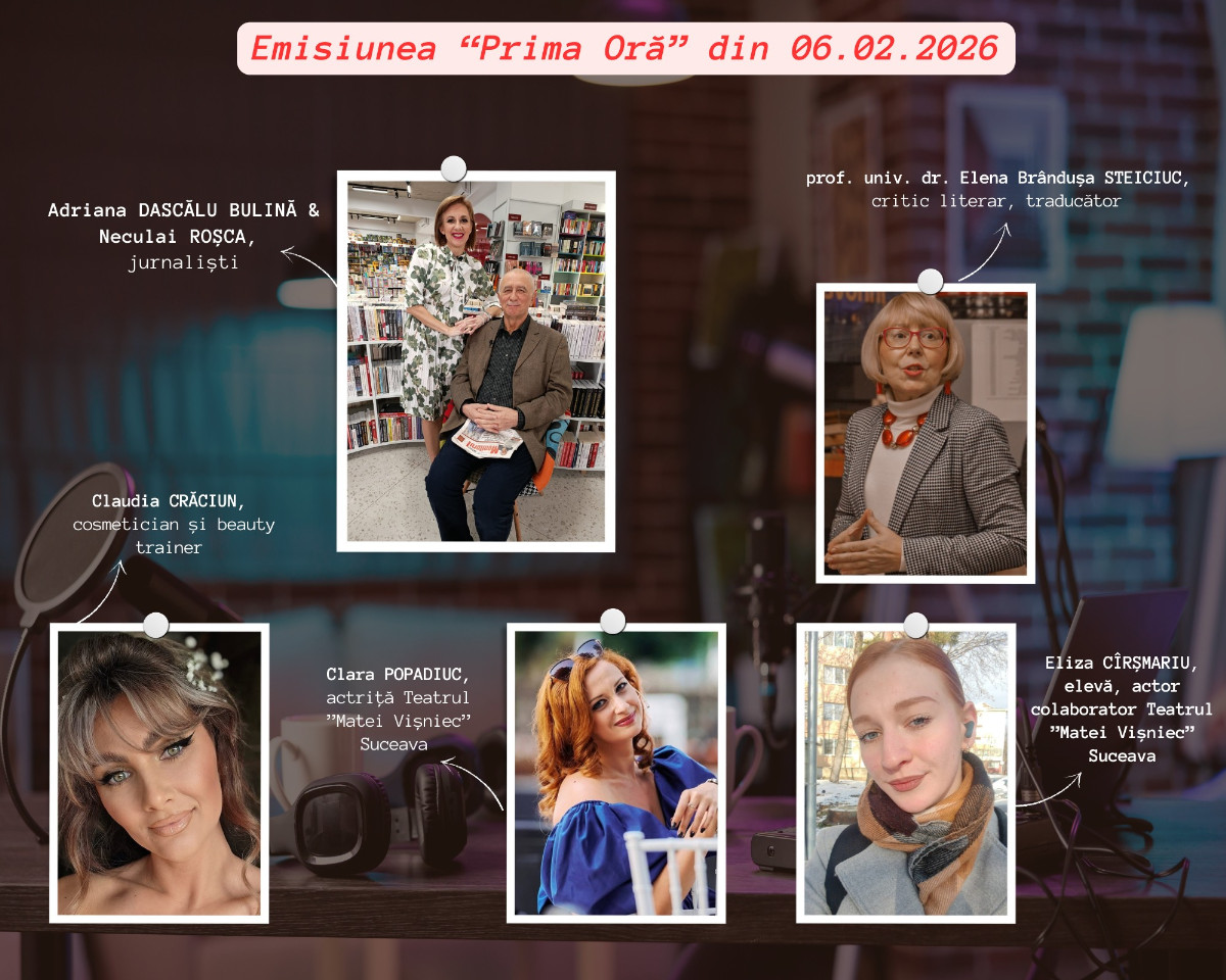 Adriana Dascălu Bulină a avut printre invitați vineri, 6 februarie 2026, la o nouă ediție a emisiunii „Prima Oră”, în direct, între 07:00 și 09:00 pe actrița Clara Popadiuc, actriță Teatrul „Matei Vișniec” Suceava și Eliza Cîrșmariu, elevă, actor colaborator Teatrul „Matei Vișniec” Suceava.