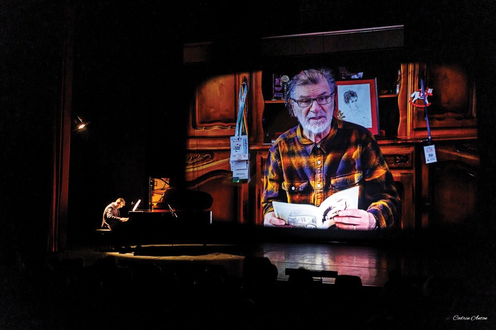 Alături de mine au mai fost Doru Ghiocel Olaș, arhitectul, și cu Emil Meder Orban, prieten cu care noi acum peste 40 de ani am colaborat la o piesă – <Doi pe un balansoar>, care a și fost inclusă fragmentar în conceptul acestui spectacol al lui Daniel Bucur. Așa și s-a încheiat această manifestare, cu un fragment din <Doi pe un balansoar> al lui Gibson. Și au fost și Diana Lazăr și cu Cătălin Ștefan Mîndru, actori excelenți, care au interpretat din lirica lui Nichita Stănescu. A fost un acompaniament muzical excepțional pe tot parcursul al lui Johannes-Raimund Onesciuc. A fost un corp de balet condus de domnul Constantinescu, un coregraf extraordinar… Au venit copii excepțional de talentați, chitară, flaut, de la școală, de la colegiul nostru de aici, de la <Ciprian Porumbescu>, le-am mulțumit, o lume extraordinară. Nici nu știi la ce să te apleci mai mult ca momente de spectacol, e emoționant, emoționant și în același timp, cum zic eu, tonifiant.