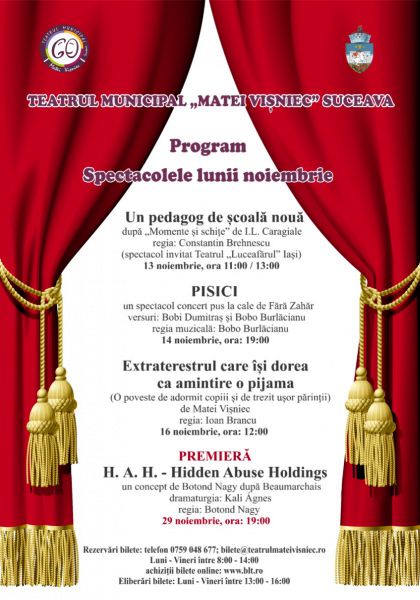 Programul spectacolelor lunii noiembrie 2019 la Teatrul Municipal „Matei Vișniec” Suceava