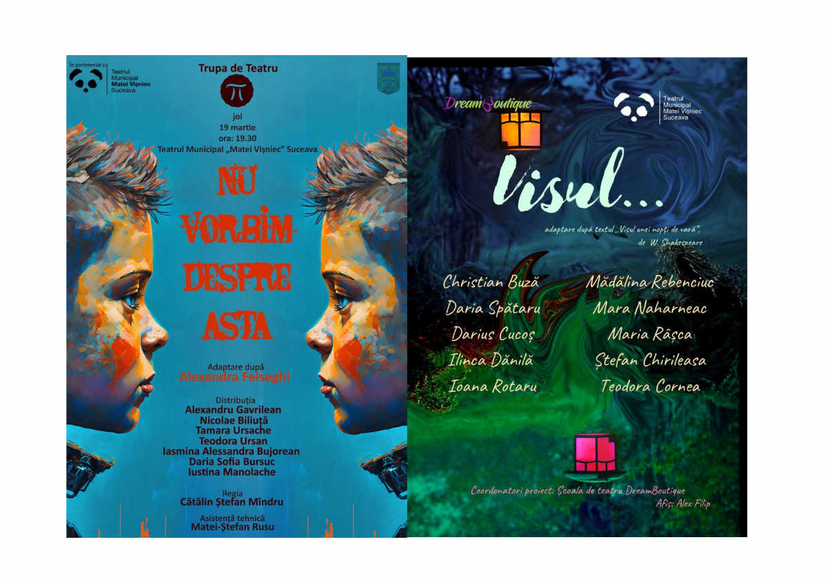 Teatrul Municipal „Matei Vișniec” Suceava este din nou alături de mii de teatre din lume, de producători de teatru, artiști, educatori, cu scopul de a împărtăși cunoștințele și practicile în domeniul teatrului pentru copii și tineri pentru a aprofunda înțelegerile, a dezvolta practica și a crea noi oportunități. Teatrul sucevean sprijină nu doar spectatorii tineri ci și creatorii aflați la început de drum. De aceea, anul acesta, vom oferi două spectacole de teatru create de copii și adolescenți.