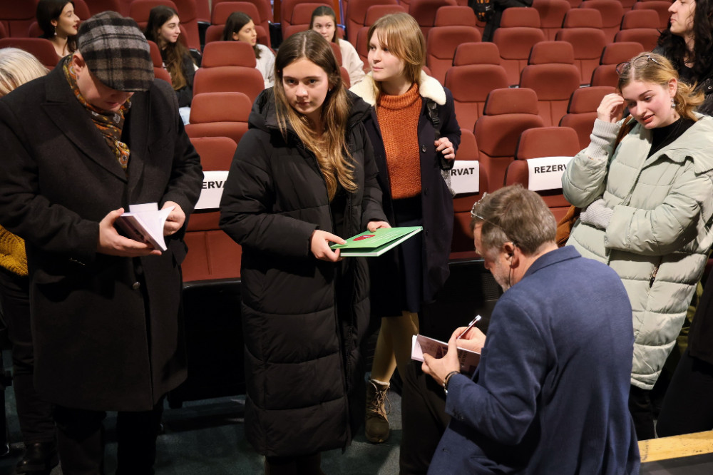 Asta credeam până azi când sala teatrului, cea de 300 de locuri, s-a dovedit neîncăpătoare. Nu mică ne-a fost mirarea când au început să curgă în valuri clase întregi de elevi și liceeni, unii însoțiți de profesori, alții veniți singuri, însă toți animați de emoția comună de a-l întâlni pe poetul și dramaturgul Matéi Visniec.